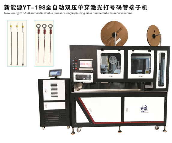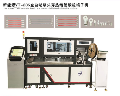 全自動雙頭穿護套端子機、全自動雙頭穿熱縮管端子機、全自動銅帶壓接端子機、全自動雙頭端子機、全自動排線端子機、全自動沾錫打端機、全自動打端插殼機、新能源全自動雙頭穿熱縮管散粒端子機、新能源全自動雙壓單穿激光打號碼管端子機、新能源大平方穿號碼管端子機。